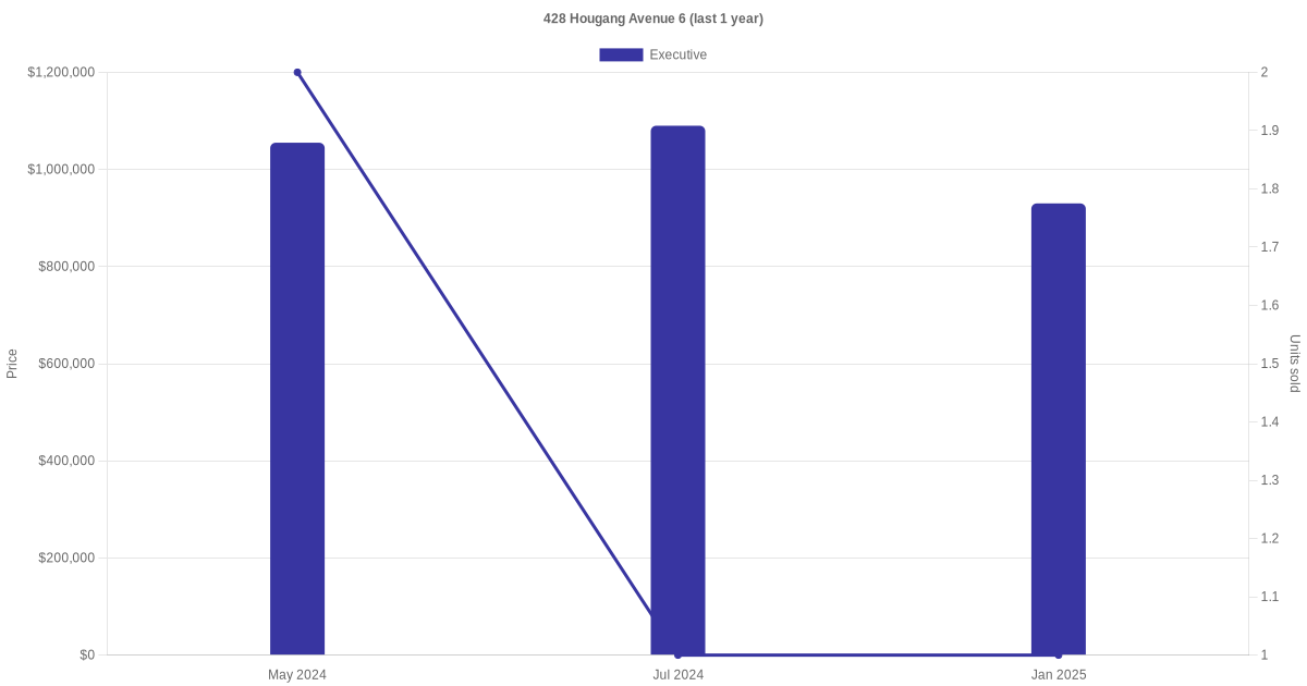 Below is a quick summary of the resale transactions volume and average price trends for the executive units at 428 Hougang Avenue 6.