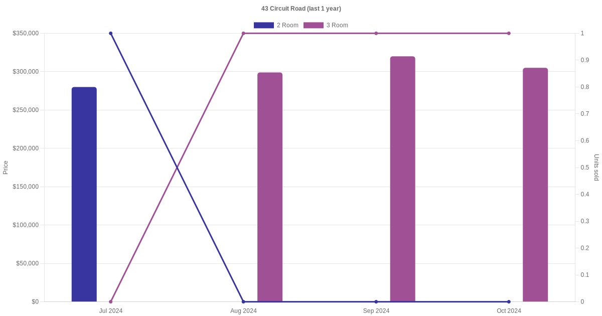 Below is a quick summary of the resale transactions volume and average price trends for the 2 room and 3 room units at 43 Circuit Road.