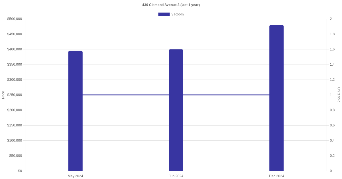 | Dec 2025 | $3,000 | 3 Room | Blk 430 Clementi Avenue 3 3 Room | Clementi |