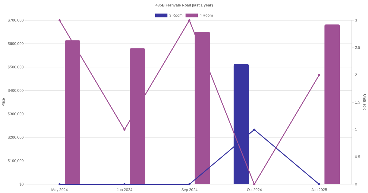 Here's a summary of the rental transactions and price trends for the 3 room and 4 room units at 435B Fernvale Road.
