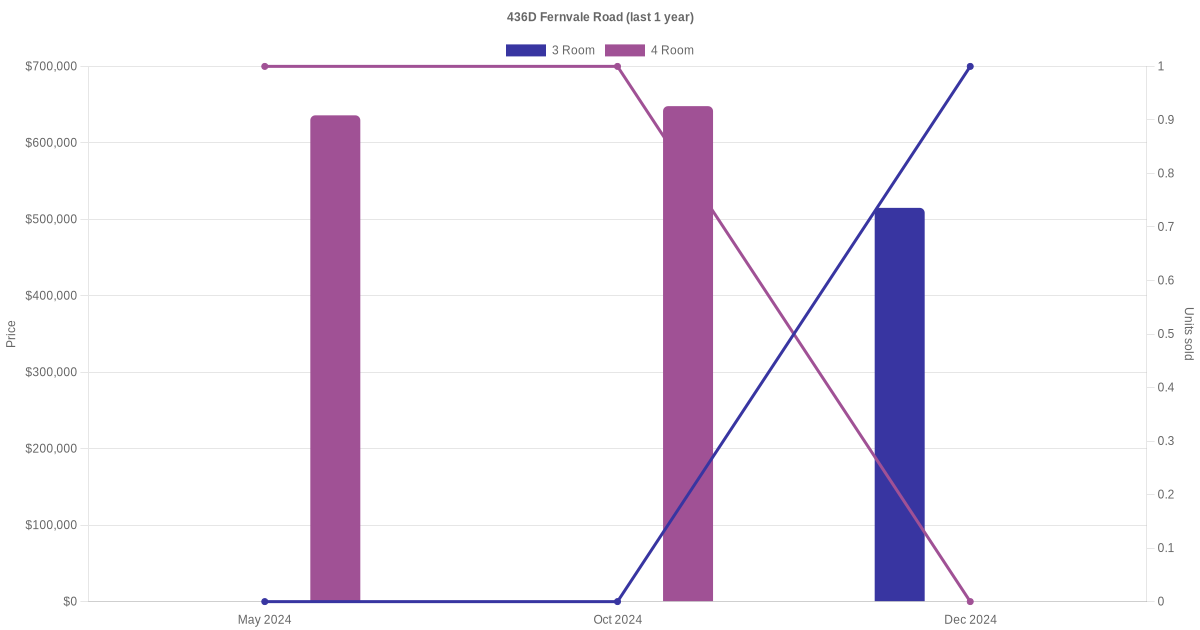 Below is a quick summary of the resale transactions volume and average price trends for the 3 room and 4 room units at 436D Fernvale Road.