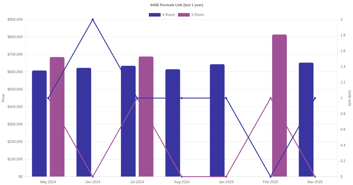 Below is a quick summary of the resale transactions volume and average price trends for the 4 room and 5 room units at 440B Fernvale Link.