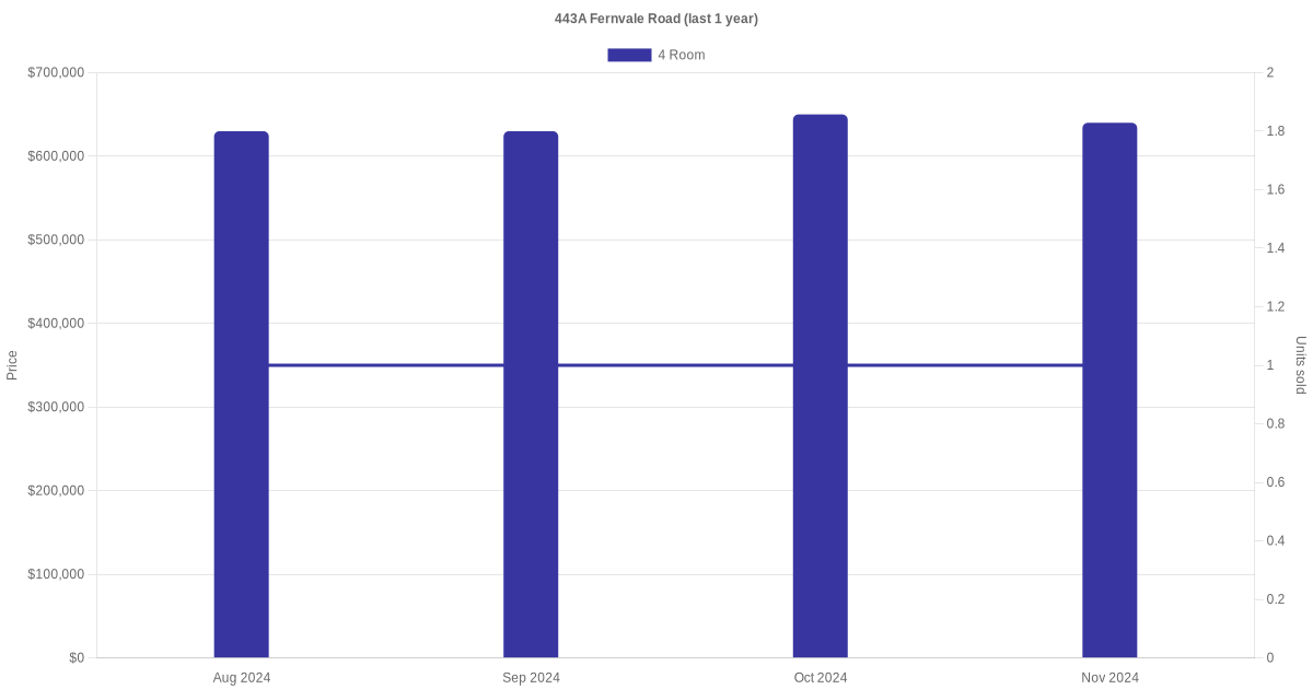 Below is a quick summary of the resale transactions volume and average price trends for the 4 room units at 443A Fernvale Road.