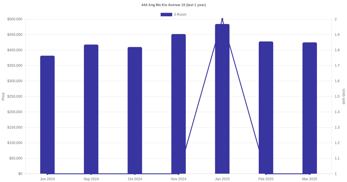 | Mar 2025 | $3,000 | 3 Room | Blk 444 Ang Mo Kio Avenue 10 3 Room | Ang Mo Kio |