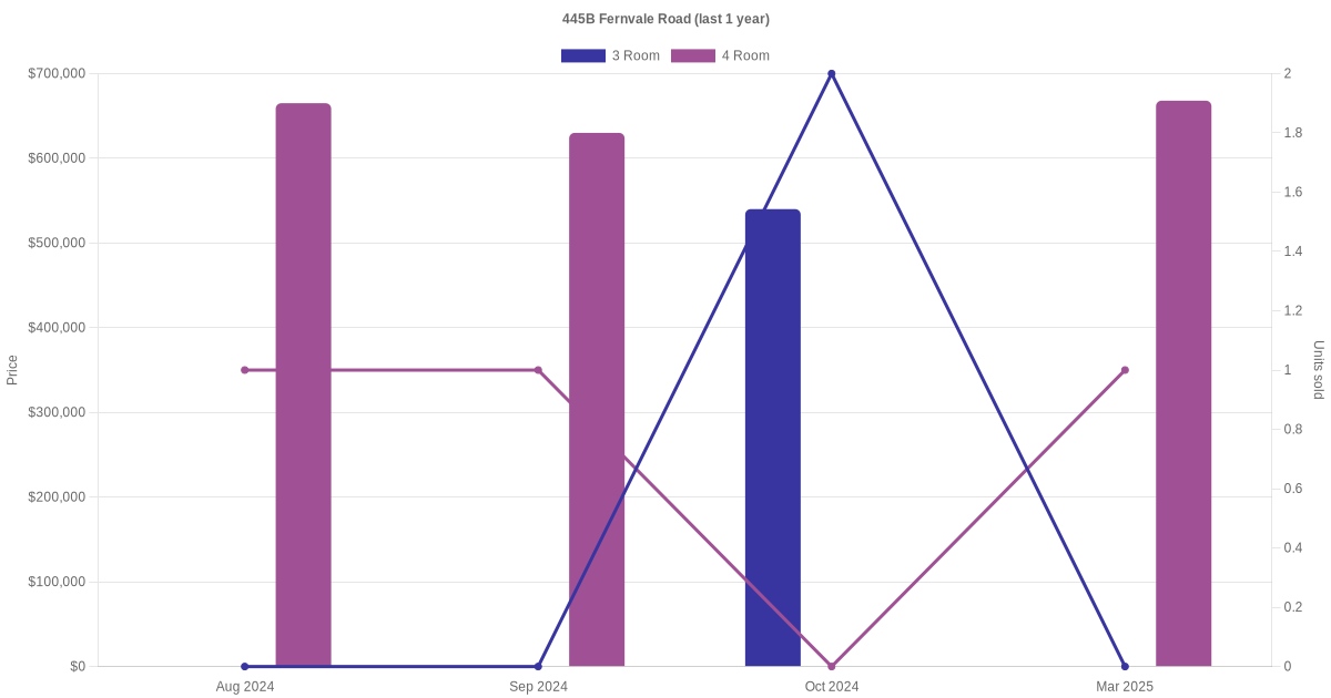 Here's a summary of the rental transactions and price trends for the 2 room, 3 room and 4 room units at 445B Fernvale Road.