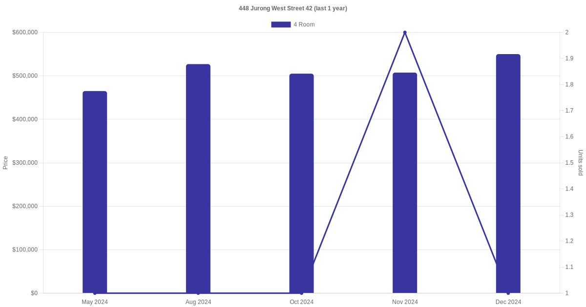 There were a total of 12 resale transactions in the last 3 years for units in block 448 Jurong West Street 42, with the latest one recorded in Dec 2025.
