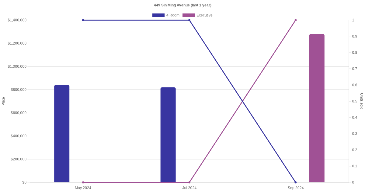 Here's a summary of the rental transactions and price trends for the 4 room and executive units at 449 Sin Ming Avenue.