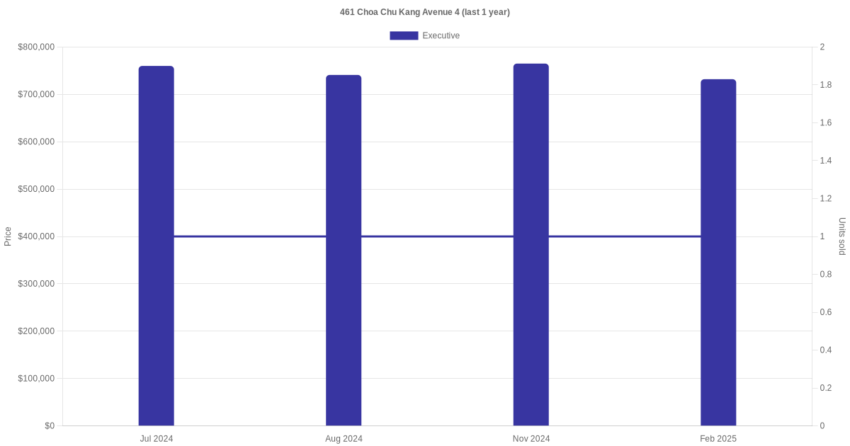 There were a total of 4 resale transactions in the last 3 years for units in block 461 Choa Chu Kang Avenue 4, with the latest one recorded in Feb 2025.