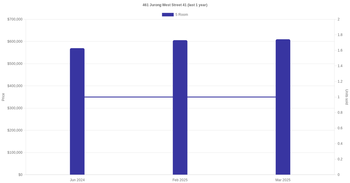 There were a total of 8 resale transactions in the last 3 years for units in block 461 Jurong West Street 41, with the latest one recorded in Sep 2025.