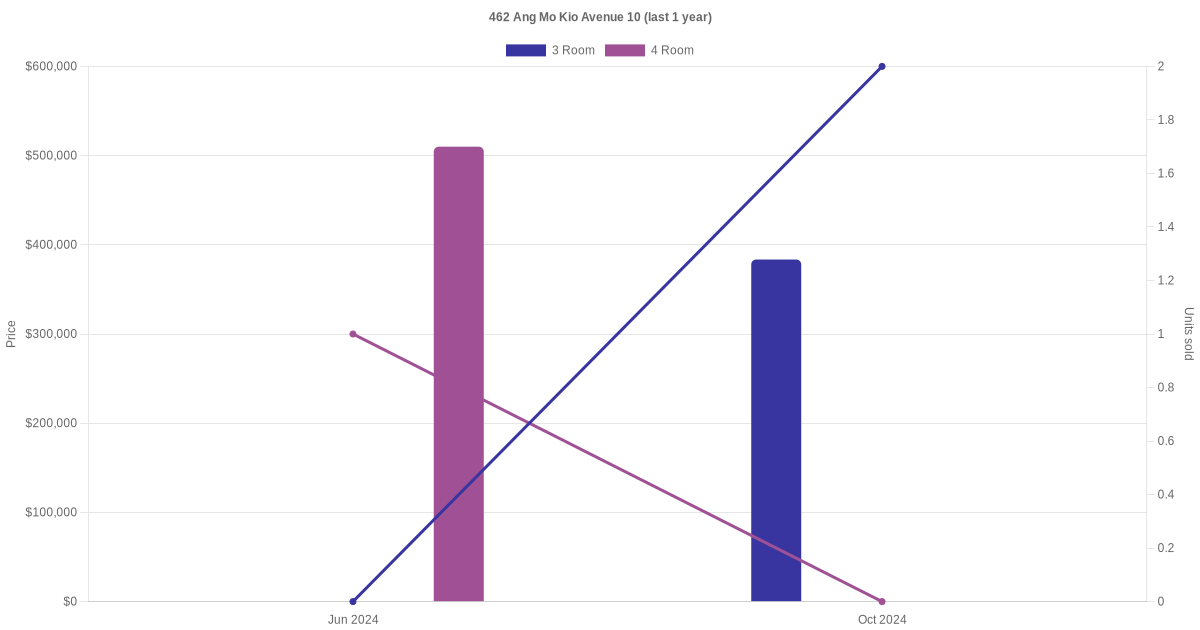 There were a total of 11 resale transactions in the last 3 years for units in block 462 Ang Mo Kio Avenue 10, with the latest one recorded in Oct 2024.