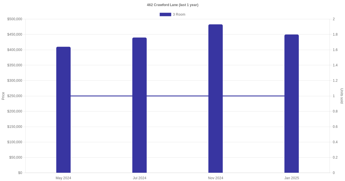 Here's a summary of the rental transactions and price trends for the 3 room units at 462 Crawford Lane.