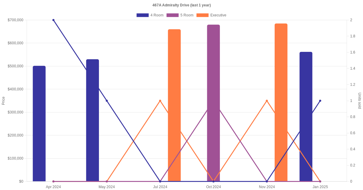 Here's a summary of the rental transactions and price trends for the 4 room, 5 room and executive units at 467A Admiralty Drive.