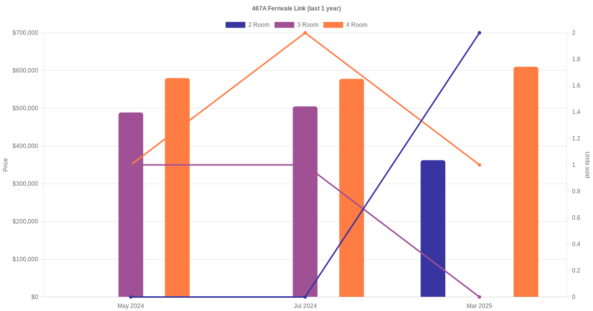 Here's a summary of the rental transactions and price trends for the 2 room, 3 room and 4 room units at 467A Fernvale Link.