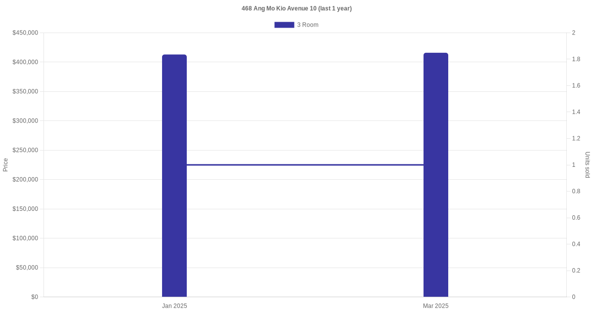 | Mar 2025 | $2,700 | 3 Room | Blk 468 Ang Mo Kio Avenue 10 3 Room | Ang Mo Kio |