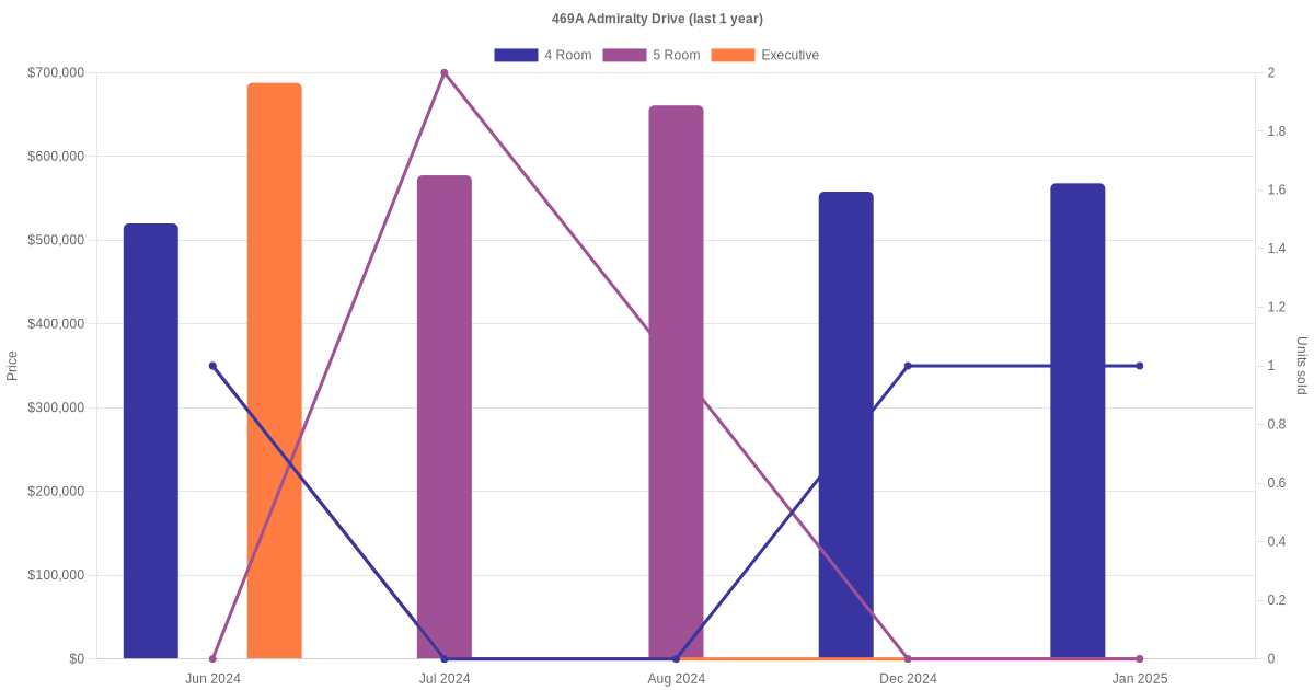 Here's a summary of the rental transactions and price trends for the 4 room, 5 room and executive units at 469A Admiralty Drive.