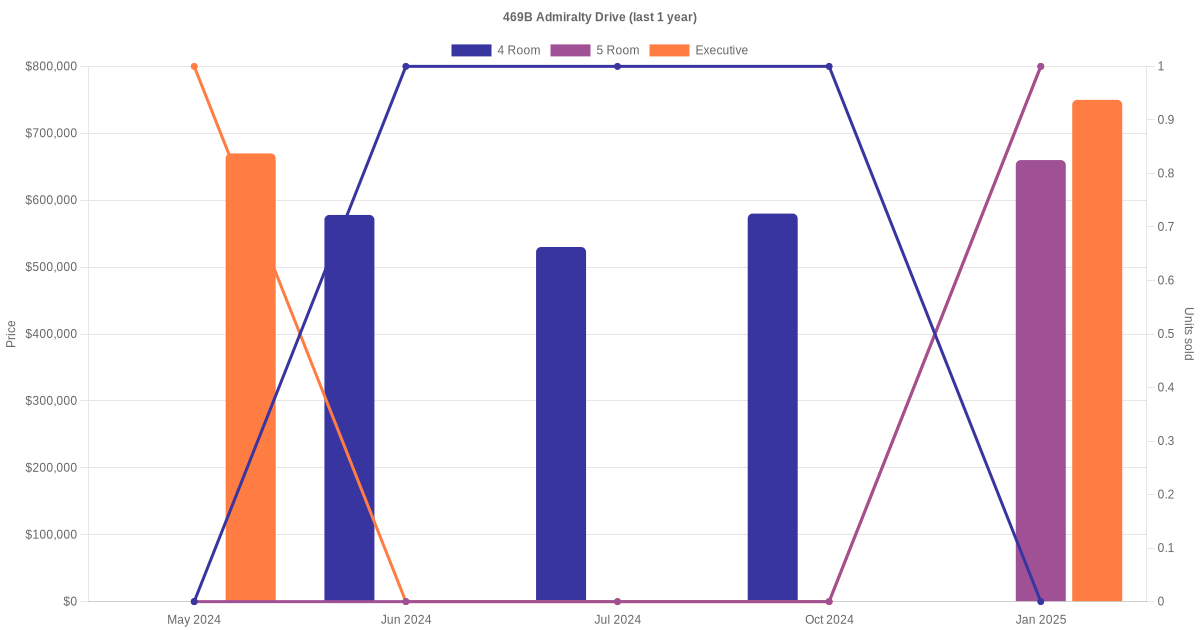 Here's a summary of the rental transactions and price trends for the 4 room, 5 room and executive units at 469B Admiralty Drive.