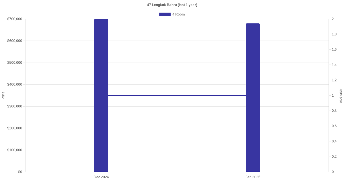 There were a total of 4 resale transactions in the last 3 years for units in block 47 Lengkok Bahru, with the latest one recorded in Jan 2025.