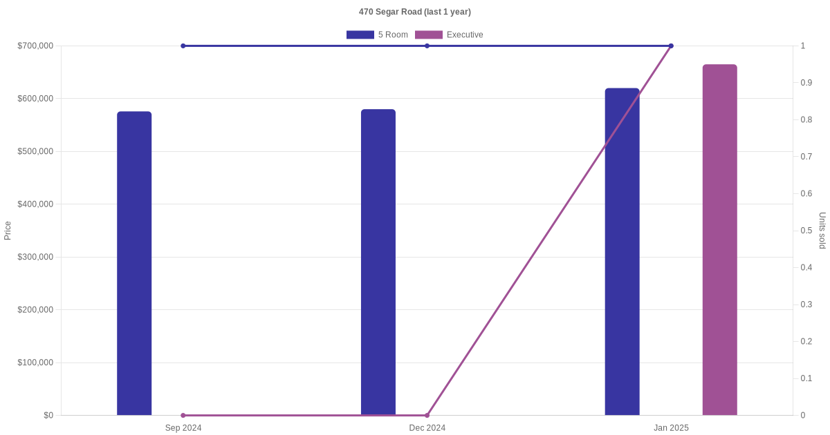 Below is a quick summary of the resale transactions volume and average price trends for the 4 room, 5 room and executive units at 470 Segar Road.