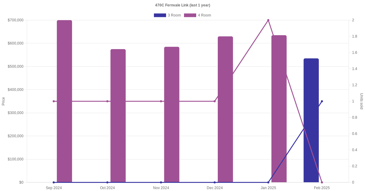 Below is a quick summary of the resale transactions volume and average price trends for the 3 room and 4 room units at 470C Fernvale Link.