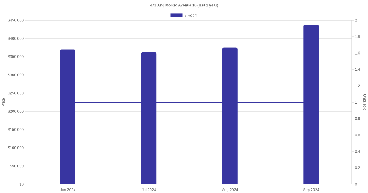 | Nov 2024 | $2,800 | 3 Room | Blk 471 Ang Mo Kio Avenue 10 3 Room | Ang Mo Kio |
