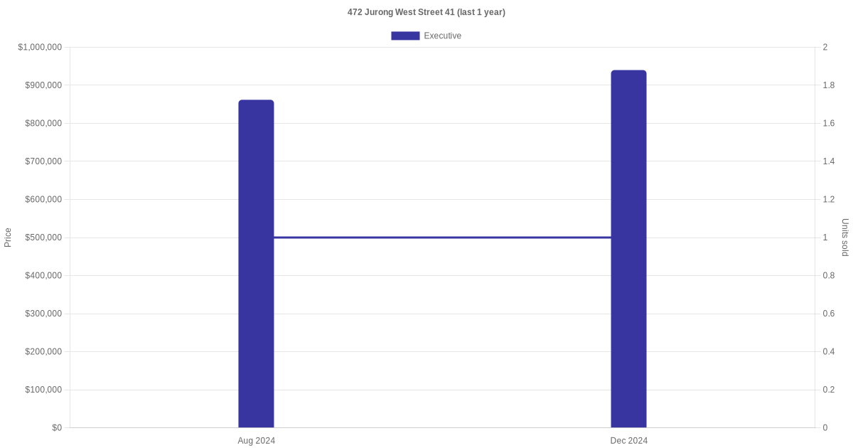 Below is a quick summary of the resale transactions volume and average price trends for the executive units at 472 Jurong West Street 41.