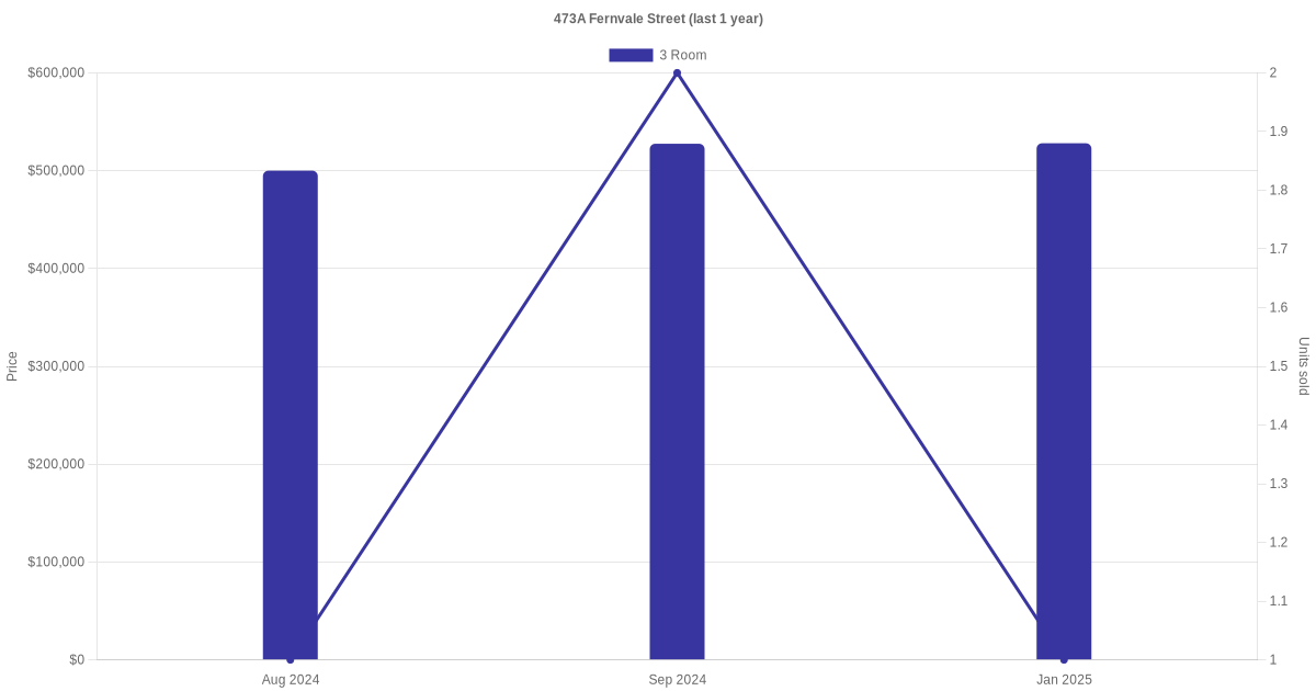 Below is a quick summary of the resale transactions volume and average price trends for the 3 room units at 473A Fernvale Street.