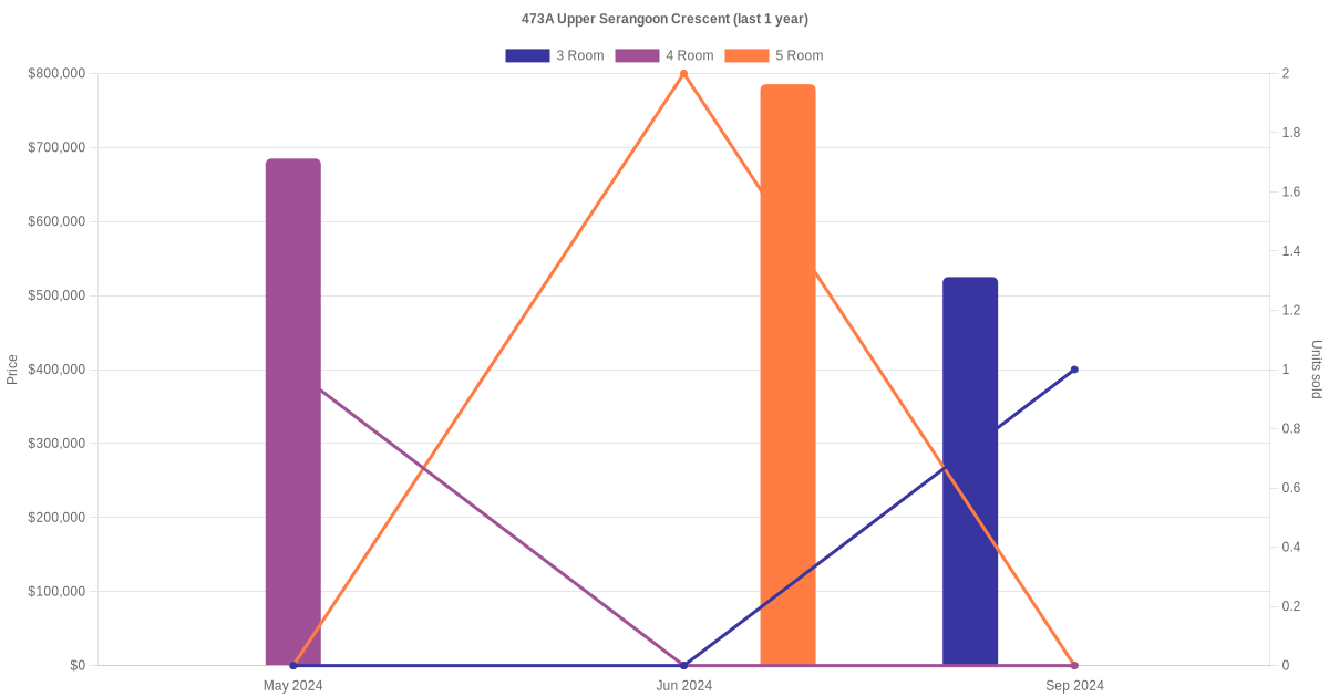 Here's a summary of the rental transactions and price trends for the 3 room, 4 room and 5 room units at 473A Upper Serangoon Crescent.