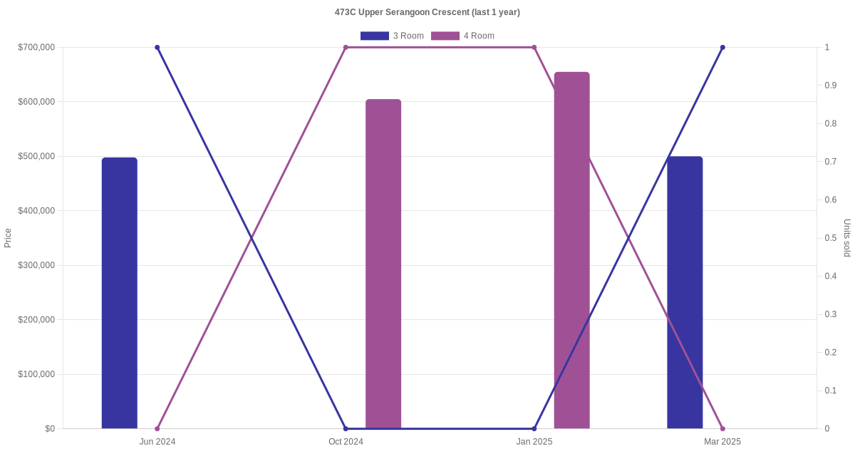 Here's a summary of the rental transactions and price trends for the 3 room, 4 room and 5 room units at 473C Upper Serangoon Crescent.