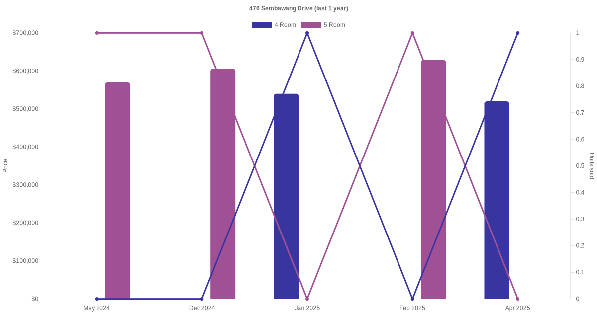 There were a total of 8 resale transactions in the last 3 years for units in block 476 Sembawang Drive, with the latest one recorded in Apr 2025.