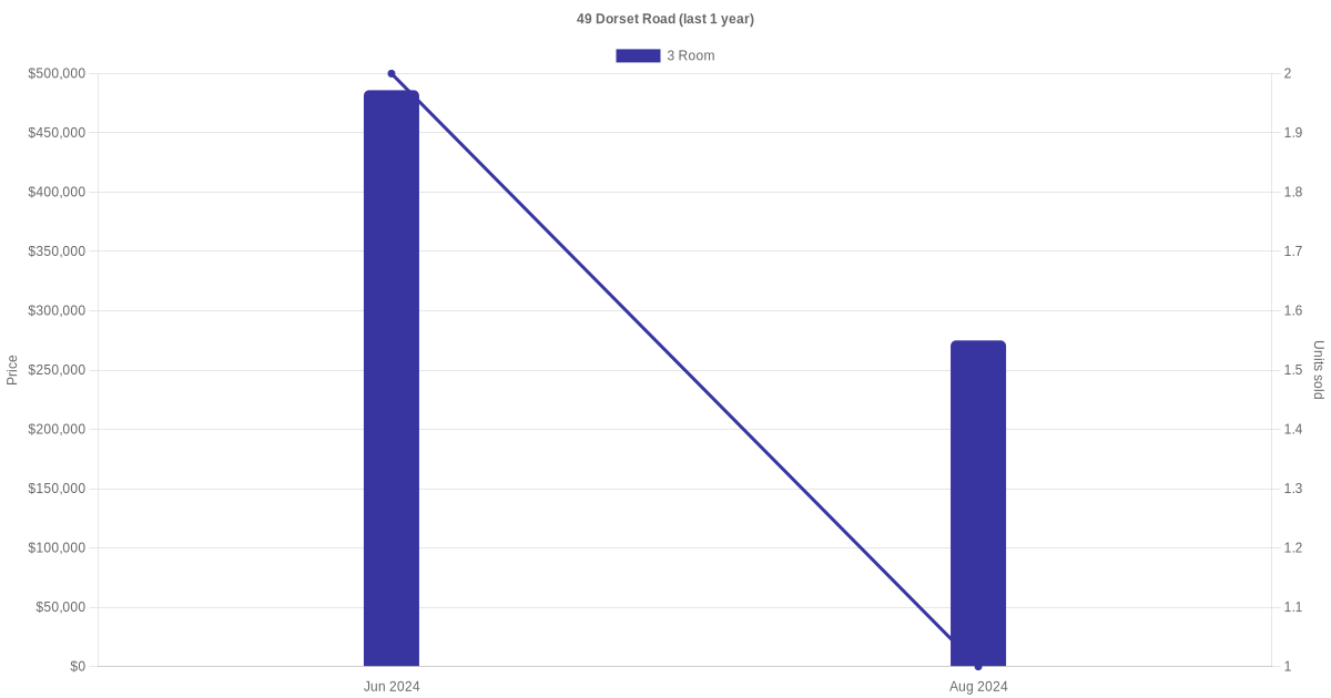 Below is a quick summary of the resale transactions volume and average price trends for the 3 room units at 49 Dorset Road.
