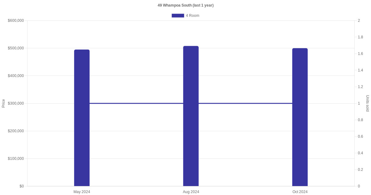 | Oct 2024 | $500,000 | $5,747 | 4 Room | Blk 49 Whampoa South 4 Room / 87 sqm | 13 to 15 | 87 sqm | Improved | 1974 |