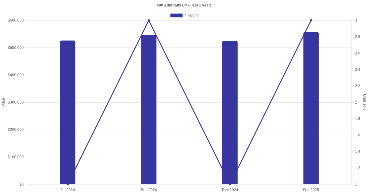 Here's a summary of the rental transactions and price trends for the 4 room units at 490 Admiralty Link.