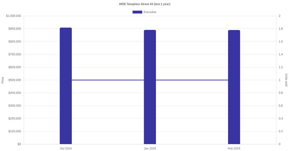 | Jan 2025 | $3,850 | Executive | Blk 495E Tampines Street 43 Executive | Tampines |