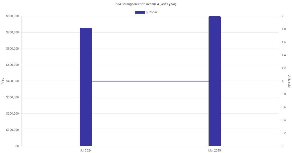 There were a total of 5 resale transactions in the last 3 years for units in block 504 Serangoon North Avenue 4, with the latest one recorded in Jun 2025.