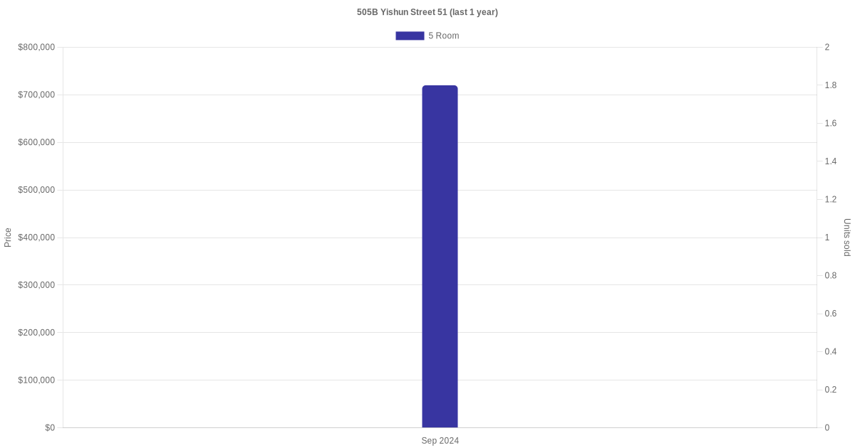 Below is a quick summary of the resale transactions volume and average price trends for the 3 room, 4 room and 5 room units at 505B Yishun Street 51.