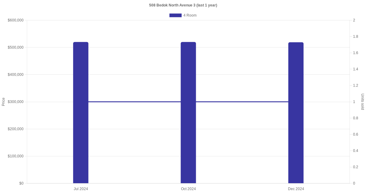 Below is a quick summary of the resale transactions volume and average price trends for the 4 room units at 508 Bedok North Avenue 3.