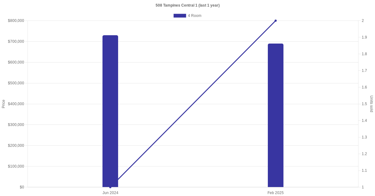 | Apr 2024 | $3,750 | 4 Room | Blk 508 Tampines Central 1 4 Room | Tampines |
