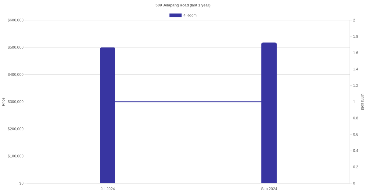 Below is a quick summary of the resale transactions volume and average price trends for the 4 room units at 509 Jelapang Road.
