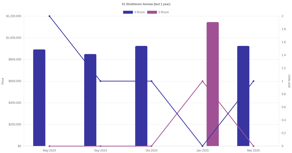 Here's a summary of the rental transactions and price trends for the 4 room and 5 room units at 51 Strathmore Avenue.
