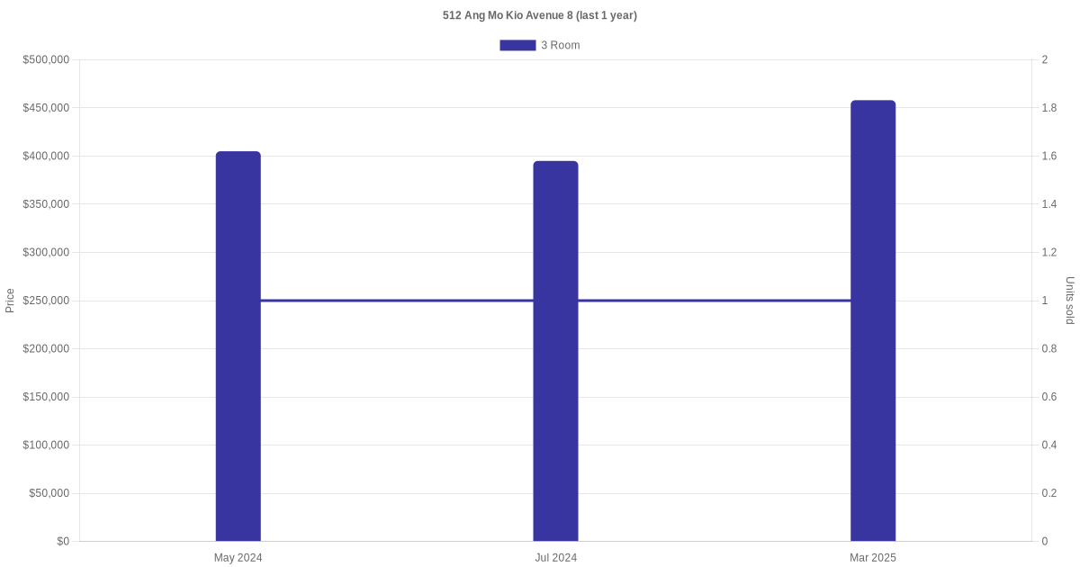 | Apr 2025 | $2,800 | 3 Room | Blk 512 Ang Mo Kio Avenue 8 3 Room | Ang Mo Kio |