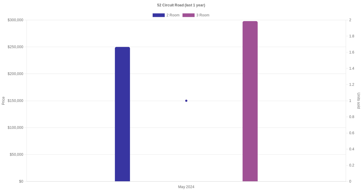 Below is a quick summary of the resale transactions volume and average price trends for the 2 room and 3 room units at 52 Circuit Road.