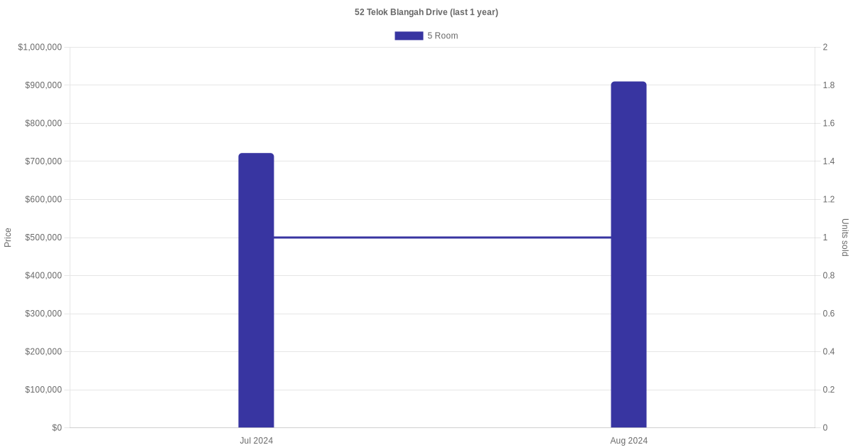 Below is a quick summary of the resale transactions volume and average price trends for the 5 room units at 52 Telok Blangah Drive.