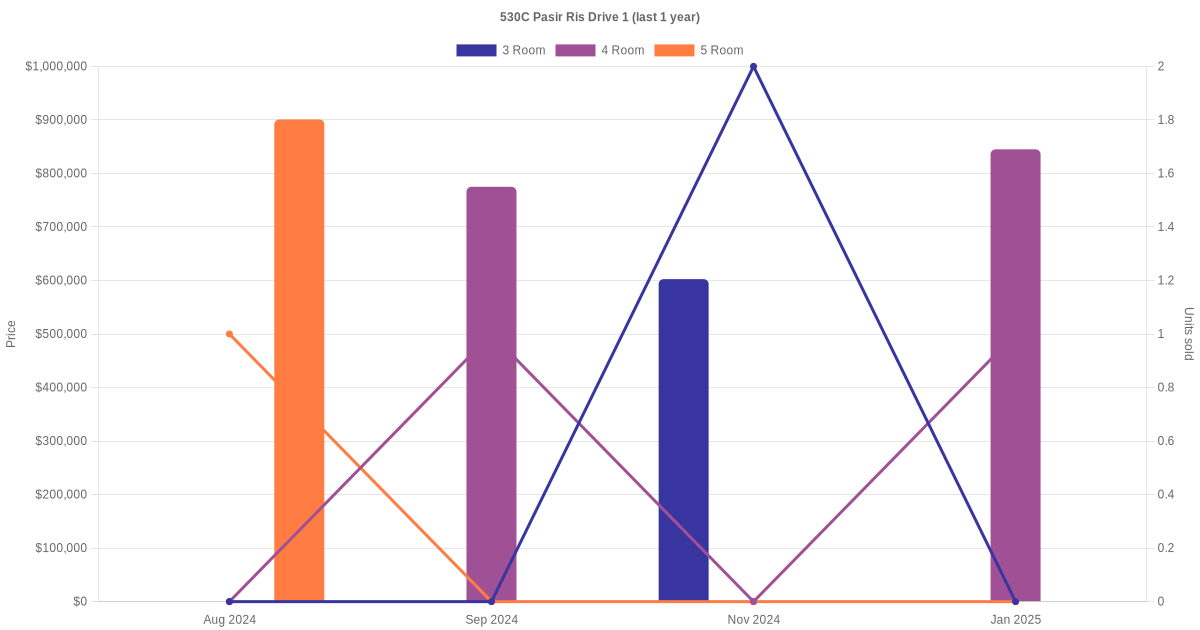 Here's a summary of the rental transactions and price trends for the 3 room, 4 room and 5 room units at 530C Pasir Ris Drive 1.