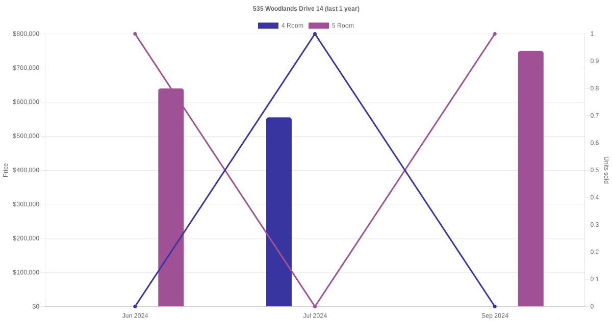 Here's a summary of the rental transactions and price trends for the 4 room, 5 room and executive units at 535 Woodlands Drive 14.