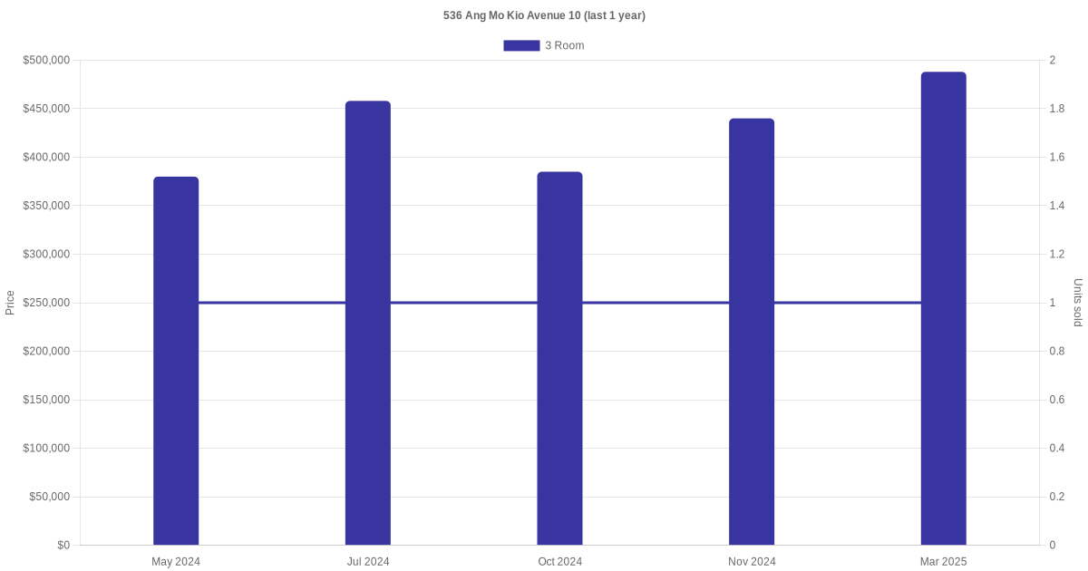 | Jul 2024 | $2,800 | 3 Room | Blk 536 Ang Mo Kio Avenue 10 3 Room | Ang Mo Kio |
