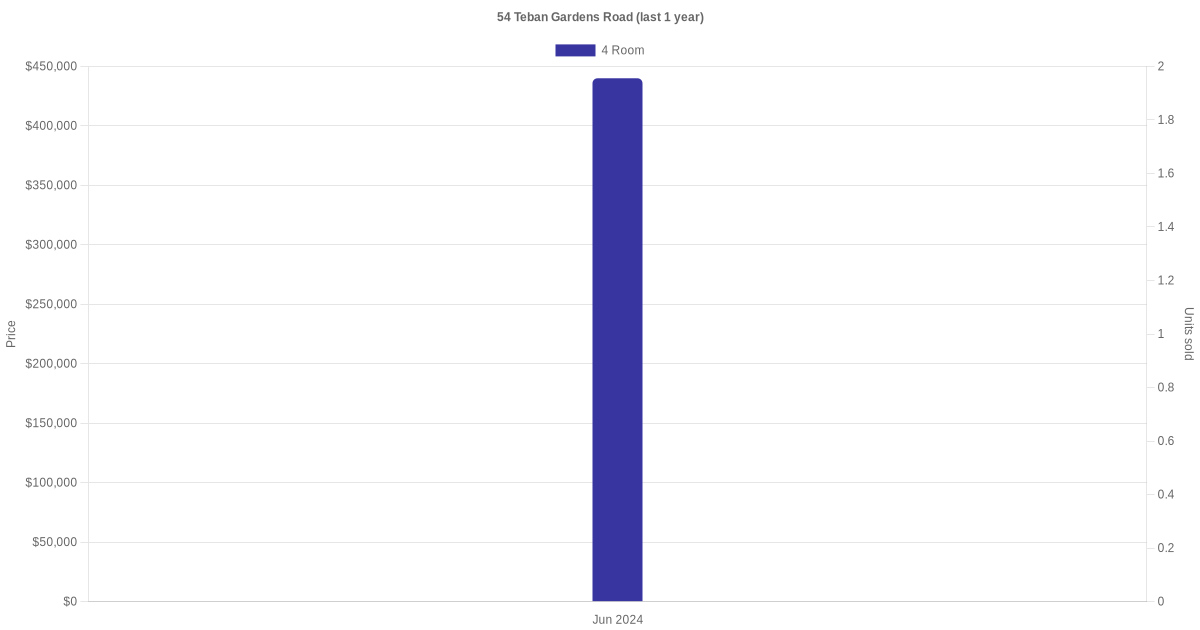 There were a total of 3 resale transactions in the last 3 years for units in block 54 Teban Gardens Road, with the latest one recorded in Jun 2024.