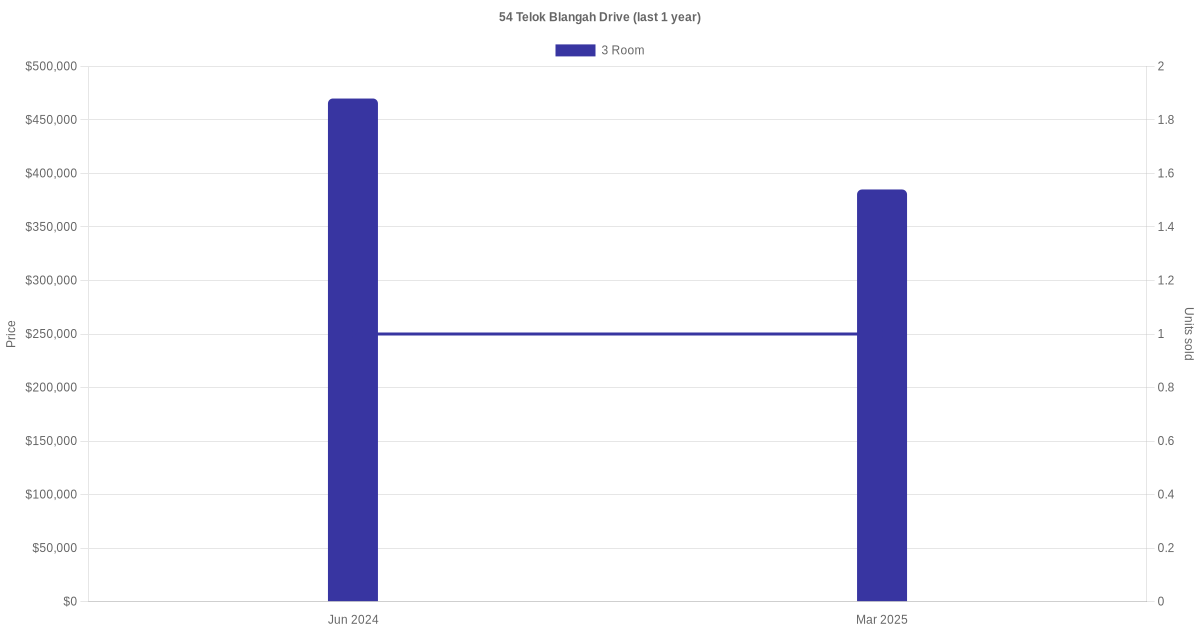 Below is a quick summary of the resale transactions volume and average price trends for the 3 room units at 54 Telok Blangah Drive.