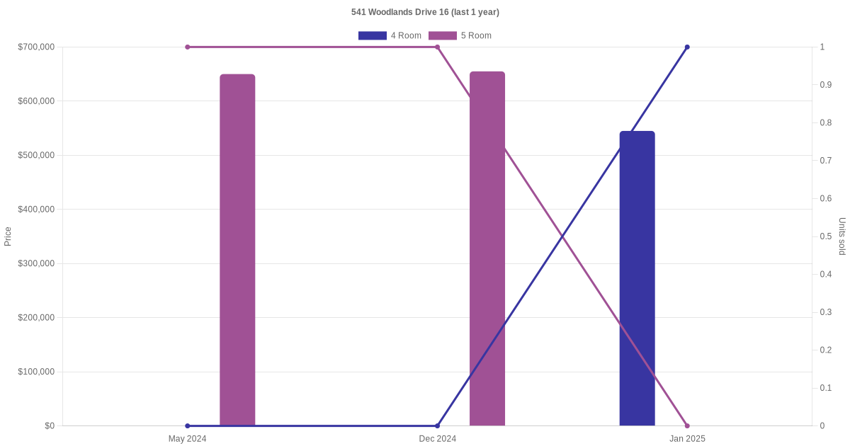 Here's a summary of the rental transactions and price trends for the 4 room and 5 room units at 541 Woodlands Drive 16.