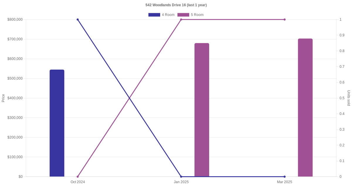 Here's a summary of the rental transactions and price trends for the 4 room and 5 room units at 542 Woodlands Drive 16.