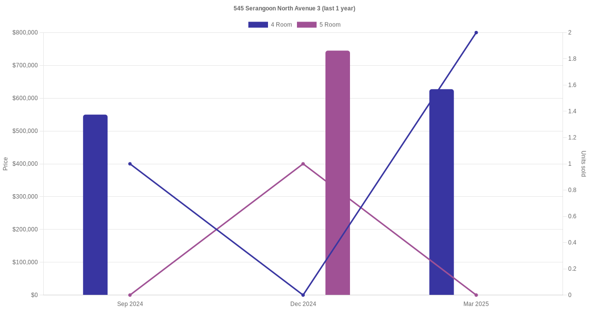There were a total of 8 resale transactions in the last 3 years for units in block 545 Serangoon North Avenue 3, with the latest one recorded in Mar 2025.